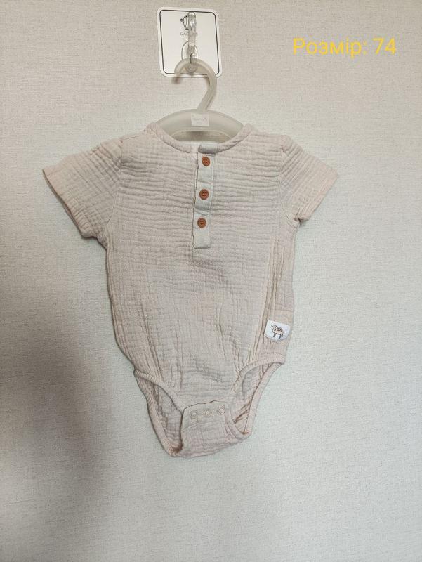 Муслиновый бодик, нежный, стильный состояние идеально на возраст 6-9 мес. в комлекті є слинявчик