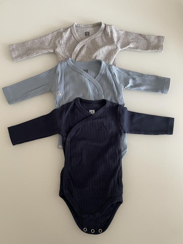 Набор из 3 боди бренда La Redoute - 1 мес (54см) - застежки спереди - это очень удобно - безопасная ткань, что подтверждено сертификатом OEKO-TEX - серая и голубая одетые по 1 раз, синяя - новая * OEKO-TEX® Standard 100 – это независимая международная этикетка для текстиля, проверенного на наличие вредных веществ. Эта сертификация гарантирует, что проверенные изделия безопасны для здоровья человека.