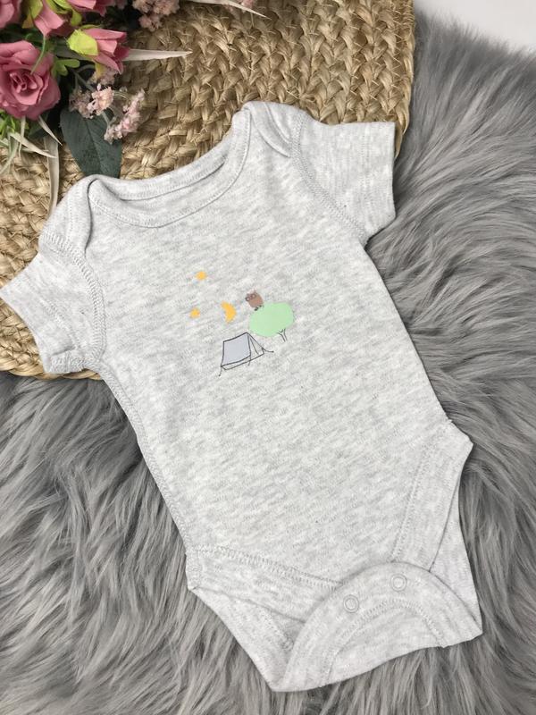 ⬇️Опис⬇️ Якщо Ви бажаєте придбати більше однієї речі, будь-ласка, оформлюйте замовлення через кнопку «Додати до кошика» ✅Сірий бодік на новонародженого. в ідеальному стані, як новий. Пласкі шви. Довжина від плеча 30,5 см. Ширина під ручками 16,5 см., тягнеться.