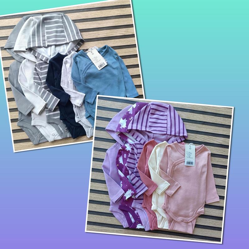 Новые наборы на девочку и мальчика 0-2 мес (50-56), три на запах, три с капюшоном Цена 440 грн за набор из 6 боди