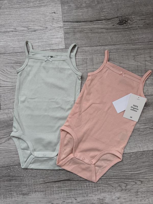 Дві боді майки від H&M в розмірі 86 см, будуть довше, трішки великомірять. 100% котон. В наявності три штуки, є ще білий .Ціна за одну 110 грн