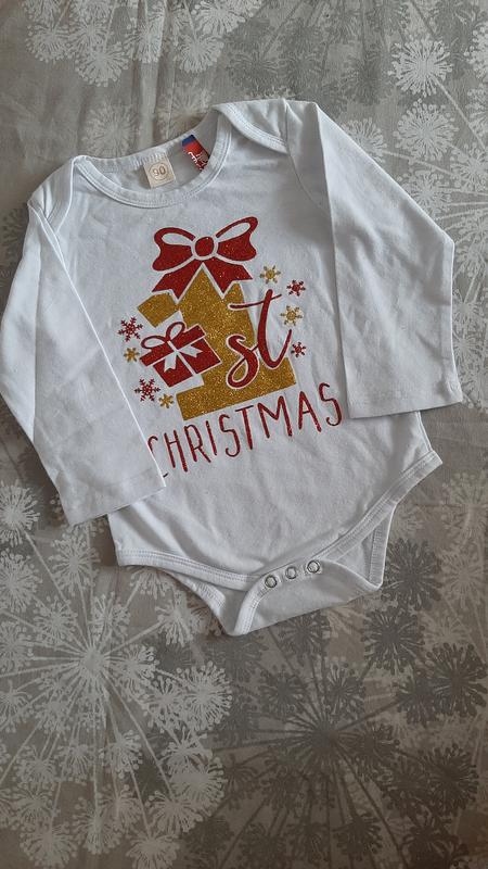 боди "Мое первое Рождество",натупающая, приятная к телу ткань, р 90. Качественный накат рисунка. Блестки не отпадают, не усыпаются.