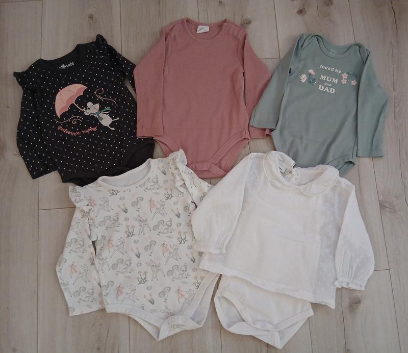 Продам лот боди на девочку с длинным рукавом. На рост 74-80 см. Замеры на фото.