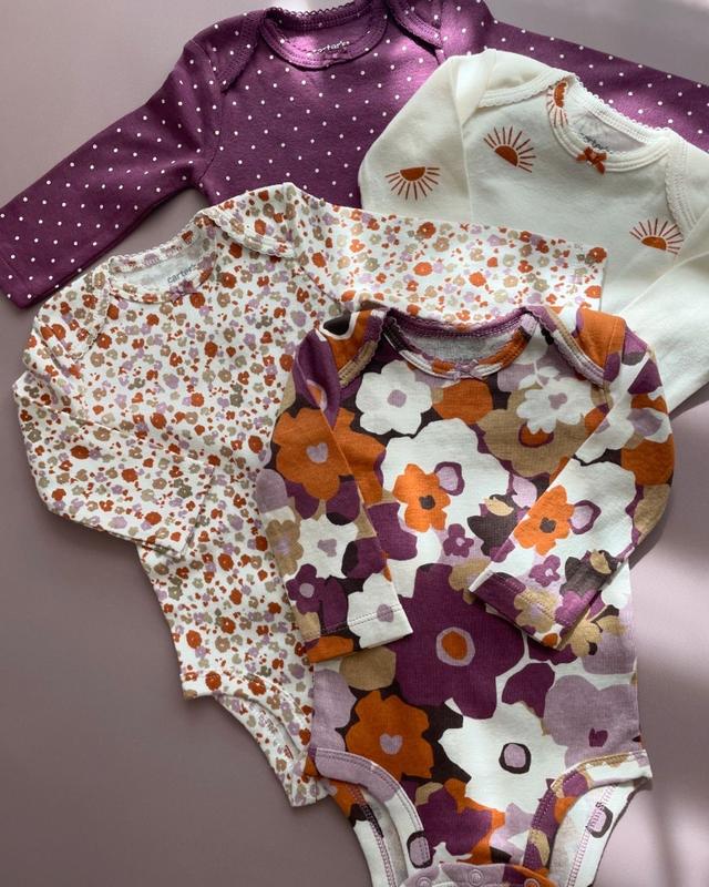 📐Розмір - 3 міс-3 шт( крупні квіти немає) 📐6 міс, 📐9 міс-3 шт.(крім дрібних квіточок) 📐18 міс-2 шт(сонечко і дрібні квіточки) 📐24 міс 100% бавовна Бодіки гарно носяться та не втрачають форму та колір після прання ✔️Ціна за 1 шт