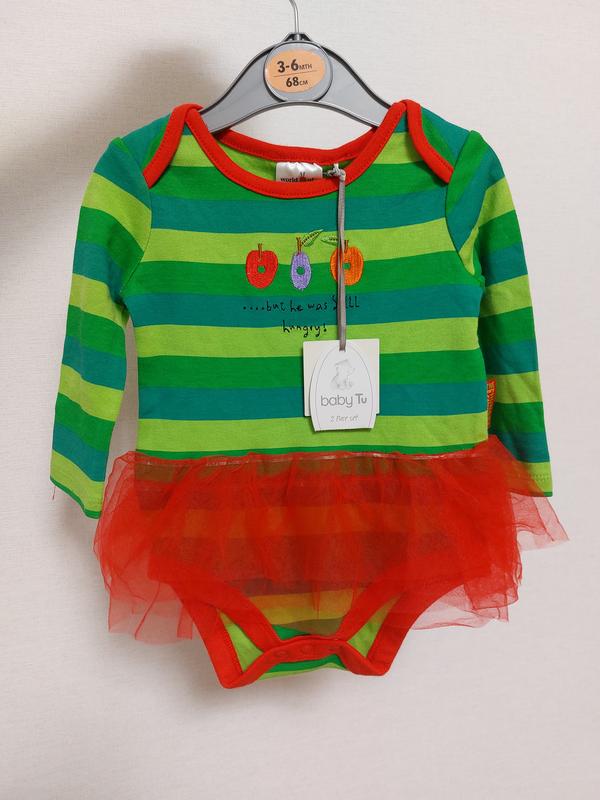 Брендовый боди длинный рукав с вышивкой и фатиновой юбочкой для девочки 3-6м голодная гуси...