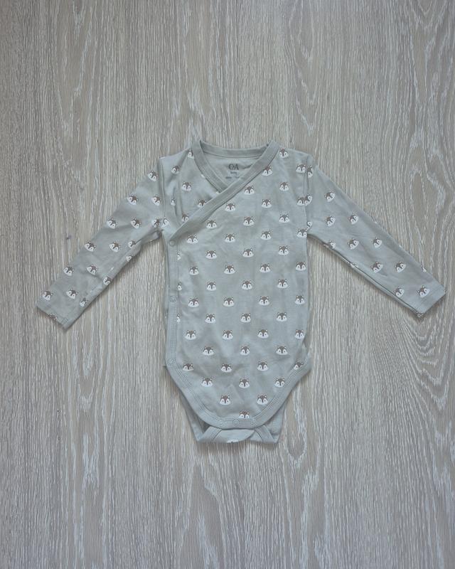 детское боди бренда C&A на возраст 9-12 месяцев, рост 80 см. хлопок 100%. цвет серо-зеленый. качественная фурнитура.