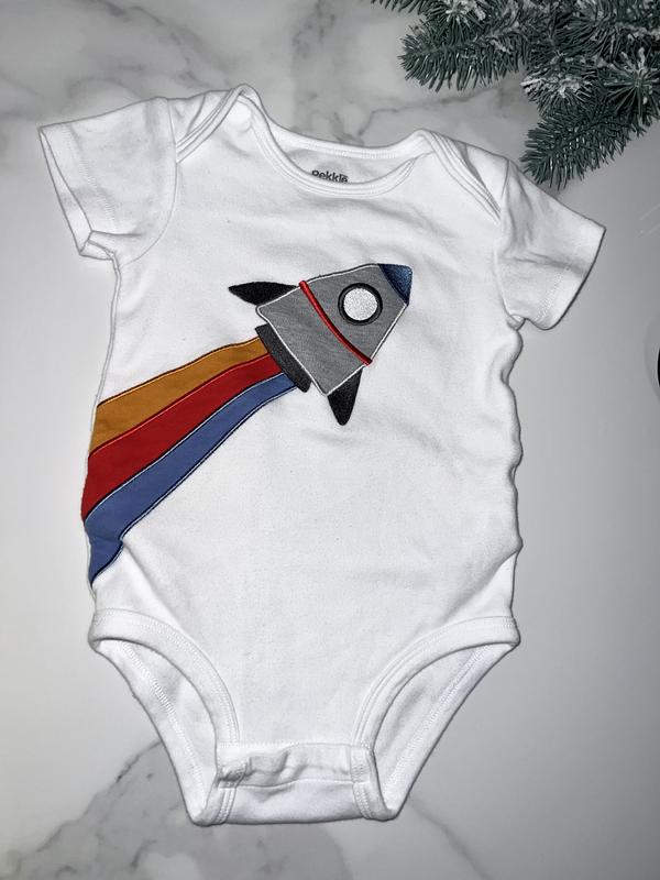 ⭐️ Біленький бодік для малюка 18 місяців від Pekkle! Яскравий малюнок ракети робить його веселим та стильним. Чудовий вибір для маленьких дослідників та активних малюків. ✔️ Ідеальний стан ✔️ Кнопки застібки між ніжками. Зручний для щоденного носіння, легко одягати та прати. ✔️Заміри є на фото ⤴️ Пишіть, з радістю відповім! Маю багато речей від 0 до 18 місяців 💗