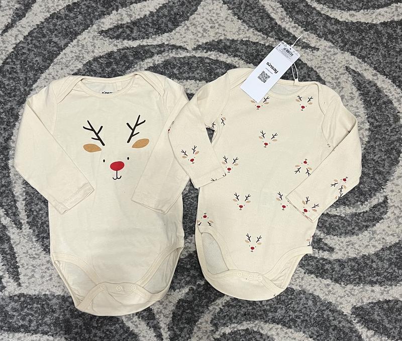 Нові боді до свят. Кожен по 60 гривень, 2 віддам за 100. Заміри: звичайний: рукав 27, довжина 43, пів обхват 23,5. В рубчик: рукав 26,5, довжина 42, півохват 23. На сторінці є ще 2 боді святкової тематики