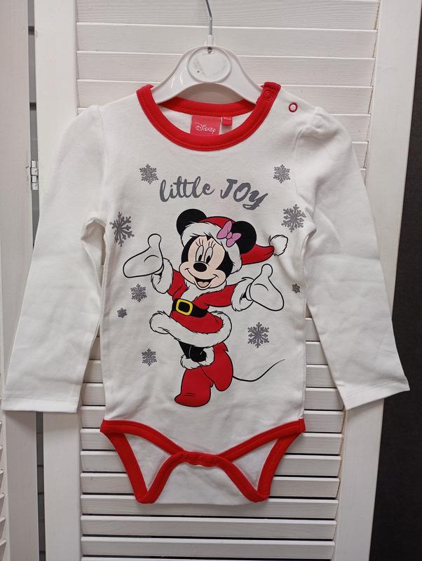 детское боди с длинными рукавами с принтом Минни Маус в костюме Санты, выполненное из хлопка.