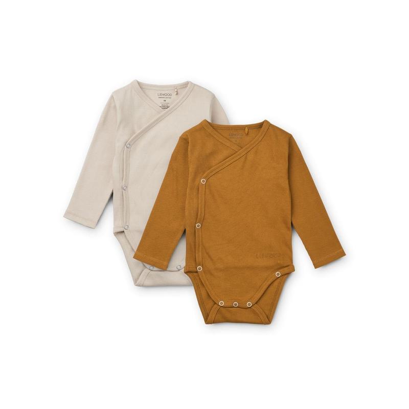 Liewood hali body stocking 2 pack golden caramel/sandy mix 95% органический хлопок 5% еластан Невероятно мягкие и нежные к коже вашего ребенка, боди Hali с длинными рукавами изготовлены из высококачественного ребристого материала, что обеспечивает плотное и комфортное прилегание. 7600037417791