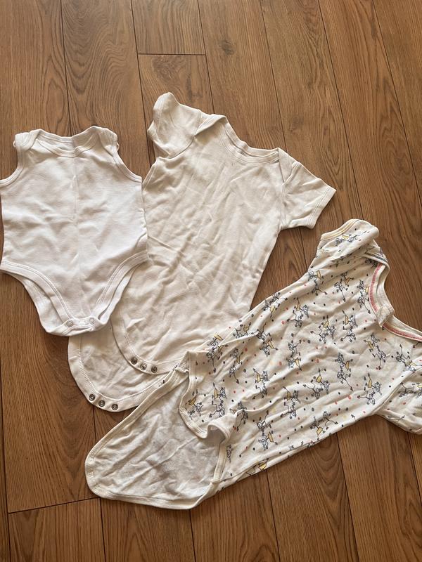 Боді білий приблизно на 2-4 місяці , білий футболкою 1,5-2 роки , в чоловічках 98/104 см ціна 60 грн один