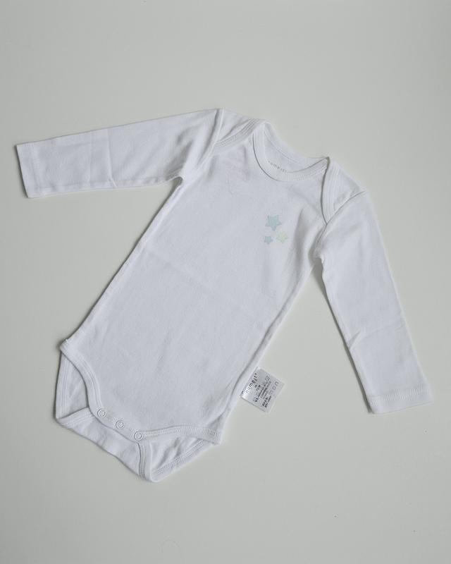 Бодик Name It, размер 74, немного болеемерит. 100% бавовна. Длина - 44 см, плечи - 20,5 см, рукав от плеча - 26 см, ПОГ - 21 см.