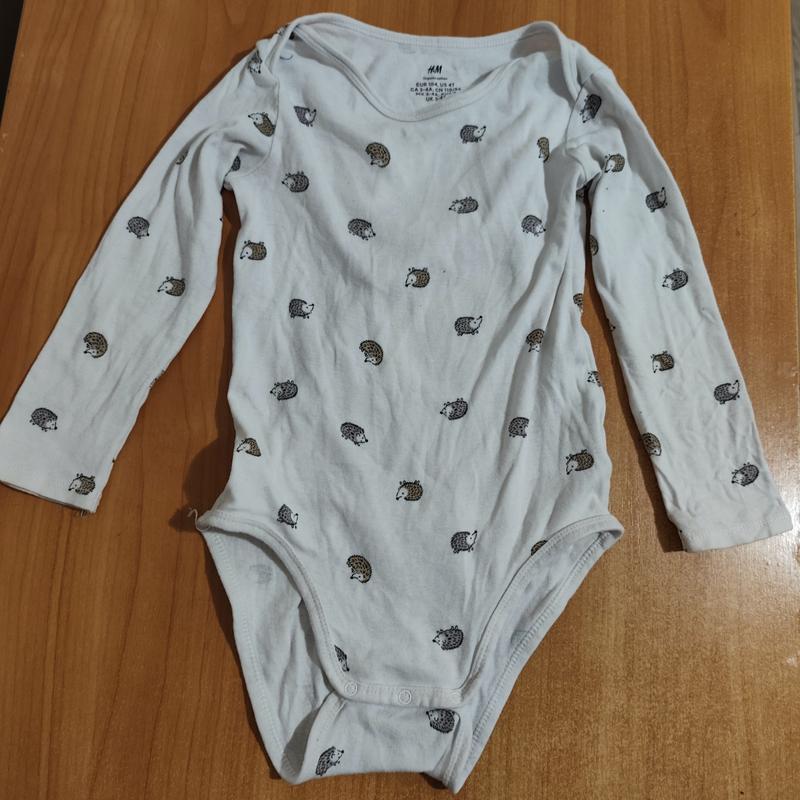 Детское боди H&M с милым принтом ежиков на белом фоне. Материал: органический хлопок Размер: 104 см (на 4 года) Состояние: добрый Цвет: белый с принтом Замеры: • Длина: 50 см • Длина рукава: 34 см • Полуобъем груди: 31 см Боди с длинными рукавами и удобными кнопками снизу. Мягкий органический хлопок обеспечивает комфорт в течение всего дня. Идеально подходит для базового гардероба малыша.