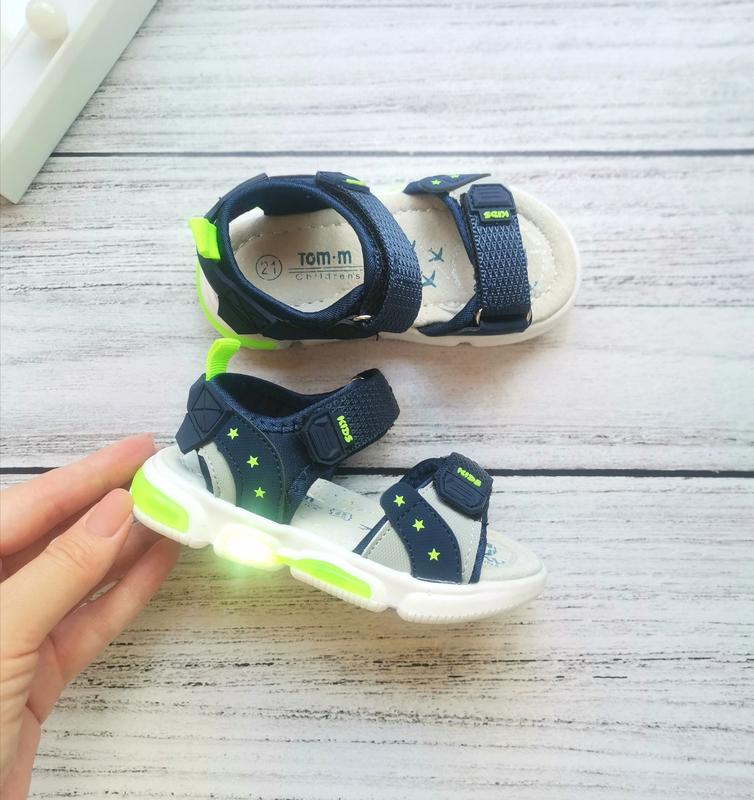 Стильные и качественные босоножки с подсветкой для мальчиков от тм Том.м. 🌠Внешне текстиль и эко кожа. 🌠Стелька кожаная с супинатором. 🌠Фиксация двумя липучками, подойдут на любой объем ножки. 🌠Легкие и гибкие. Размеры - замеры стельки полностью: 21р - 14,2 см