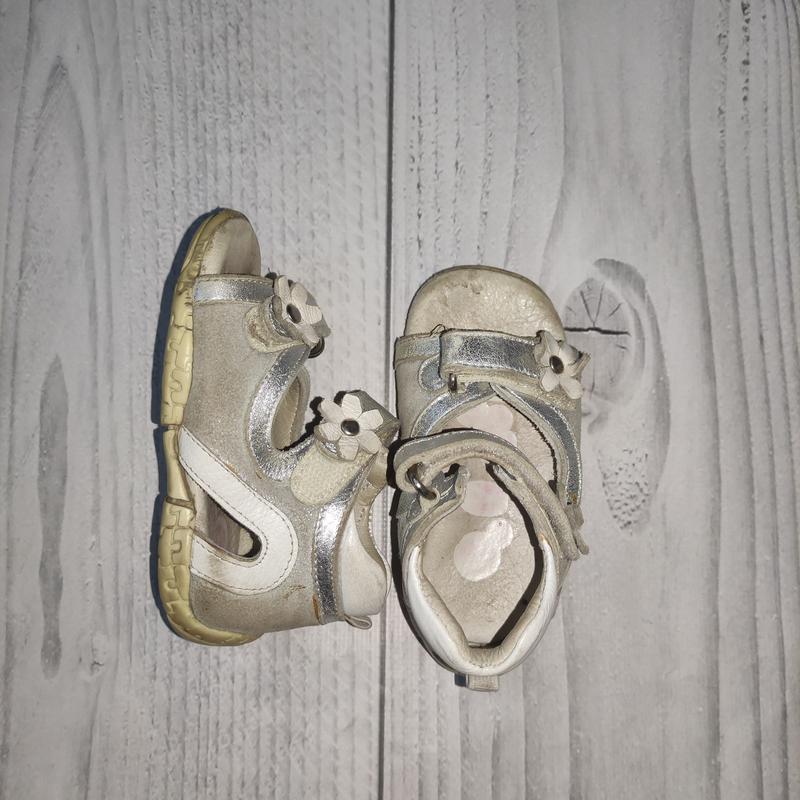 Серебристые Perlina.с супинатором,жестким задником, натуральная кожа.состояние среднее.вме равно ребенок быстро перерастет..цвет серебристый ее такой яркий и есть несколько стежков лопнутой отделочной строчкия ее не обрезала.закрутились цветочки..новая обувь жтой фирмы стоит 1000-1500..свою функцию выполняют,не перекошены.размер 19,по стельке 12,5 см смотрите другие мои объявления