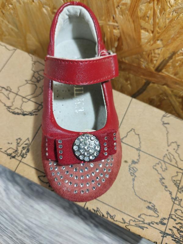 Детские туфли для девочки. Твердый носок, если ребенок ударится ножкой пальчики будут защищены. Высокий задник для хорошей фиксации ноги. Застегивается на липучку. Внутри кожаная стелька с супинатором. Размеры 22. Маломерит. 22 р-р-длина стельки 13 см. Цена 200 грн.