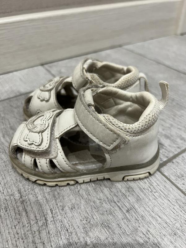 Продаю босоножки, состояние - хорошо. Видимо следы ношения, но нигде не порваны и не протертые. Идеальный вариант для первой обуви, так как есть две липучки для регулировки ширины ножки и закрытая пяточка.