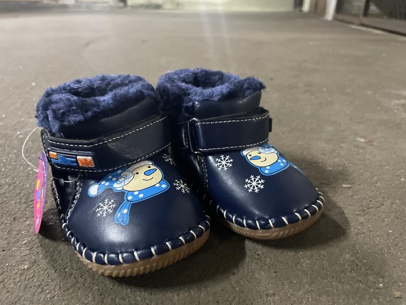 Детские зимние пинетки, которые выполнены из кожзама. Утепленные зимние пинетки искусственным мехом. Подошва выполнена из качественной резины. Зимние детские пинетки очень легкие и удобные. Размеры: 16,17 Цена: 300 грн