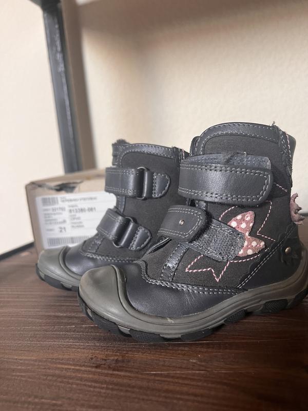 Ботинки в новом состоянии. Много было обуви, и за эти ботиночки забыли. Обували несколько раз. Очень теплые. Легенькі. Кожа+замш. Подошва не скользкая. Есть коробка к ним