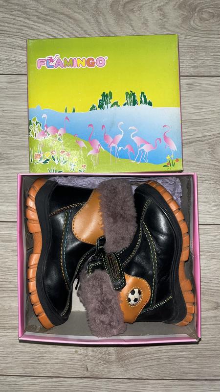Натуральные кожаные зимние сапожки для мальчика. Очень теплые и удобные ботинки. Утеплены полностью цигейкой. Размер 22, по стельке 14-14,5 см. Стан великолепен, носили мало. Только немного покацивав поверхностно кожу на задниках об подножку детской тележки. См. Крайнее фото. В глаза не бросается, под брюками незаметно, можно обработать кремом. На фото - как есть.