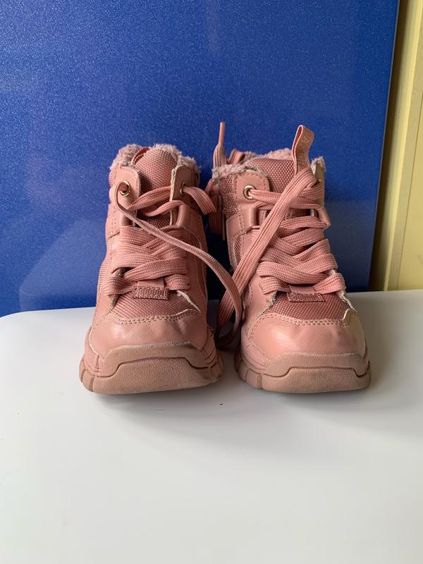 Красивые утепленные ботинки на осень-весну от H&M, 21 размер. Десь 13-14 см стелька. Сбоку замок. Маленький нюанс - Жут умятина спереди, потому что были сложены в коробку.
