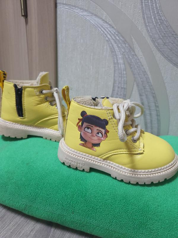 Ботинки в хорошем состоянии. Нюансов нет. С боку на замочке и шнурках. Длина стельки 14 см