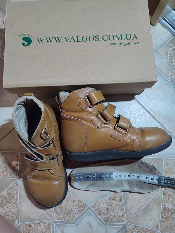 Кожаные ортопедические ботинки для плоско-вальгусной стопы, р.21, стелька 21 см но на стопу 20.5 см. Стелька ортопедическая ВП-1