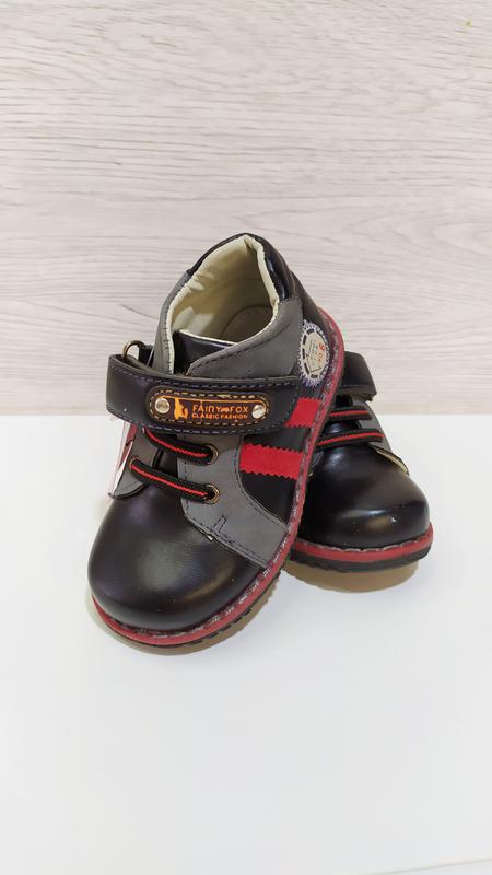 До вашої уваги демісезонні туфлі для хлопчика чи дівчинки ТМ ***** Застібка липучка та резиночки, підійдуть на середню та вузеньку ніжку. Матеріал услітки - шкіра, верх штучна шкіра. Мають каблук Томаса. Размір 22 Поустилці - 13,5 см Висота задника - 5,5 см ЯК ВИЗНАЧИТИ РОЗМІР: Поставте обидві ніжки (в носках) на аркуш паперу, обведіть контури стопи. Виміряйте відстань від п´яти до виступаючого пальця. Якщо довжина стопи правої та лівої ніжки відрізняються – вибирайте найбільшу. Ортопеди рекомендують брати запас 5-7 мм для літнього взуття та 10-15 мм для зимового та осінньо-весняного.