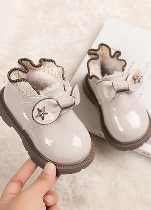 Цена В наличии ❄️ очень красивые ботиночки, изнутри утепленные коротким густым мехом. Легкие, есть липучка. Подошва гибкая. Подойдут под любой образ. Размеры в наличии: Р15-12.5см-3шт Р16-13см-2шт Р17-13.5см-2шт Р18-14см-2шт Р19-14.5см-2шт Р22-15.5см-1шт Р23-16см-3шт Р24-16.5см-3шт Р25-17см-2шт ❗️Обратите внимание, полномер, ориентир только на стельку. Запас 0.7см +-