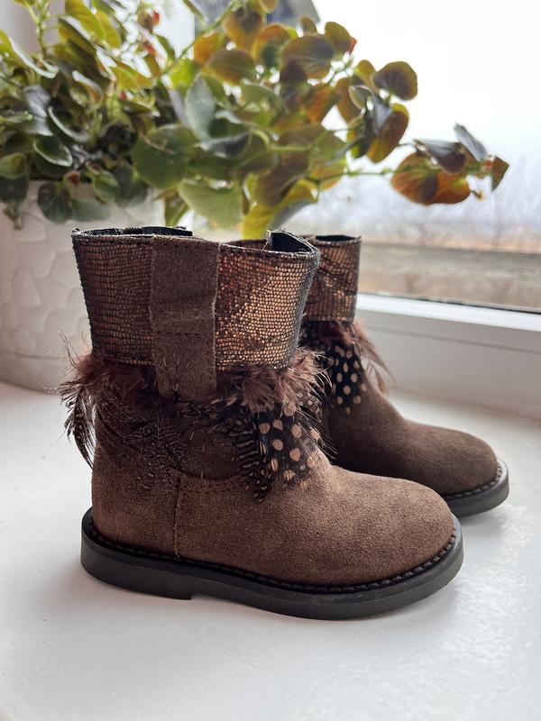 Новые ботиночки для девочки, размер 20 (о ком будет интересен, более детально померяю), полностью кожаные (по верх замша, в середине кожа), и по наборке 104 97, одевали один раз, потому что быстро ножка выросла. Сделано в Португалии.