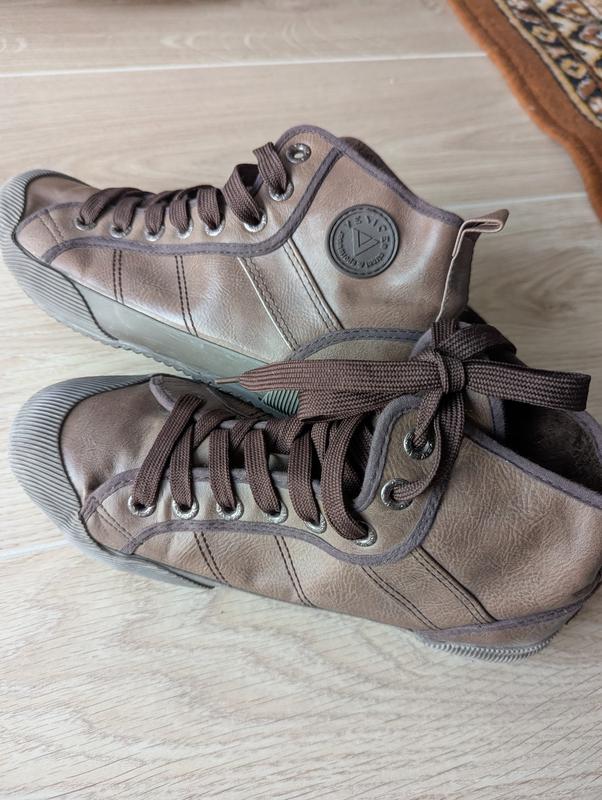 Кеды высокого спортивного типа для мальчиков. размер 38. стелька 24 см. Верх- искусственная кожа. Середина с тонким утеплением. на шнуровках. Подошва литая. Цвет- средний коричневый. Стан хороший.
