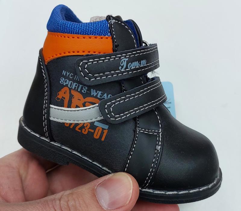 РОЗРОДАЖ останній розмір 18р. устілка 11,5 см Черевики для хлопчиків Tom.m Колір: чорний Матеріал внутрішній: флісова устілка з супінатором + підкладка фліс Матеріал зовнішній: шкіра та м'яка екошкіра Легкі, стильні та неймовірно яскраві черевики. Ідеальні для перших кроків дитини. Підійдуть на високий підйом і стандартну ніжку. Черевики чудово фіксуються на ніжці завдяки регулюванню повноти липучками