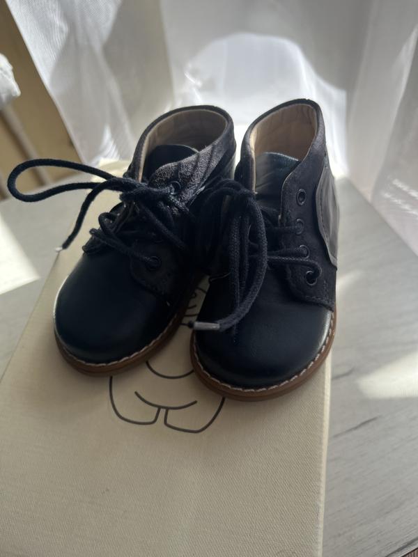 Синие кожаные ботинки синего цвета, используемые, демисезон Каучуковая подошва На левом ботинке имеются царапины (на фото), никак на ношение не влияет Выглядят стильно и очень удобны. Отличный выбор для любой одежды.