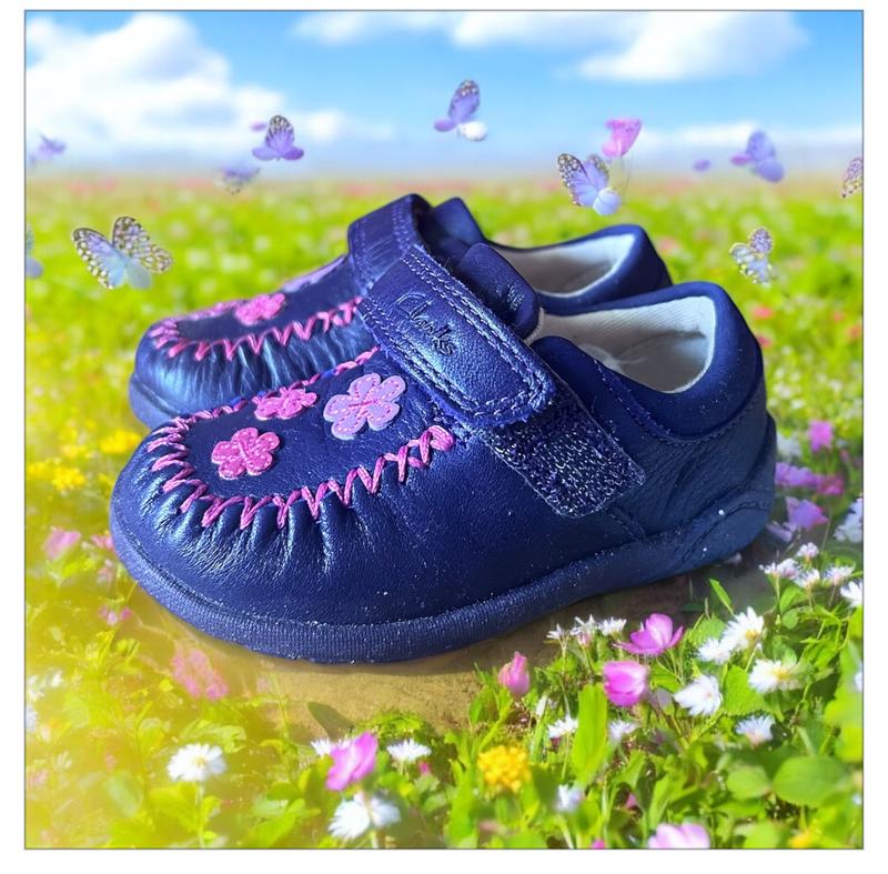 Нові дитячі мокасини Clarks - верх - 100% натуральна шкіра - мяка замшева устілка - усередині - текстиль, шкіра - підошва не ковзає - задник фіксує пяточку - застібаються на липучку (можна регулювати ширину) Європейський розмір 18,5 Довжина устілки 11 см