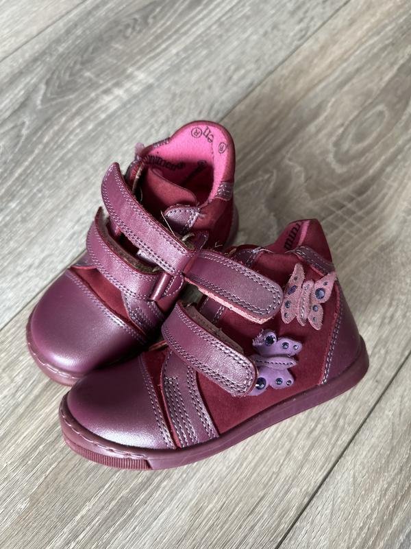 Нові черевички для дівчинки, розмір 21, 13,5 см устілка, має супінотор, є невеликий дефект на носику лівого черевичка, видно на фото. Дуже гарна якість