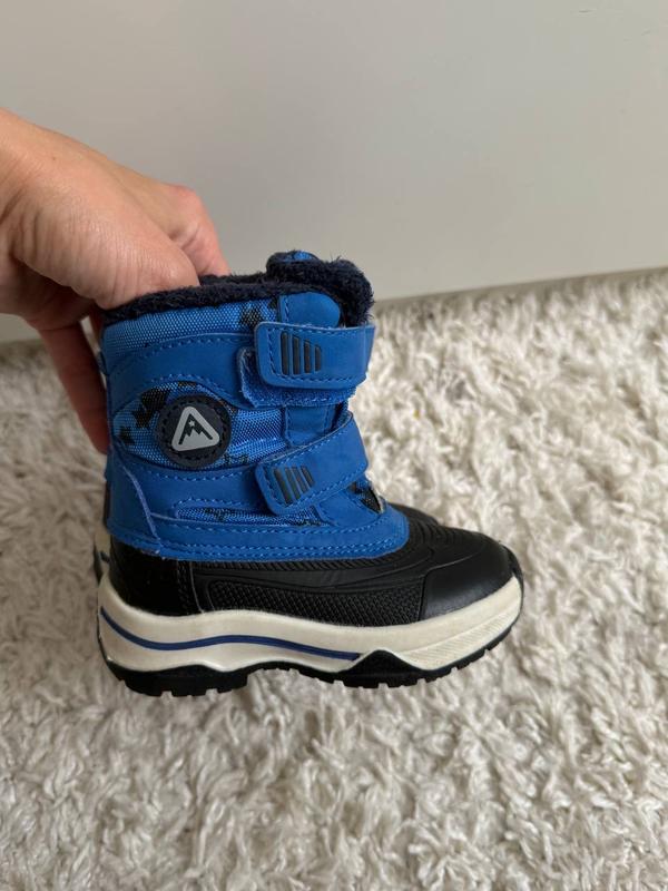 Класні сапожки від Lupilu. 21 розмір . Дуже теплі і затишні. Не промокають за рахунок резинової калоші. На липучках, зручно вдягати . Дуже класна якість . Майже не вдягали , переросли їх . Стан практично нових .