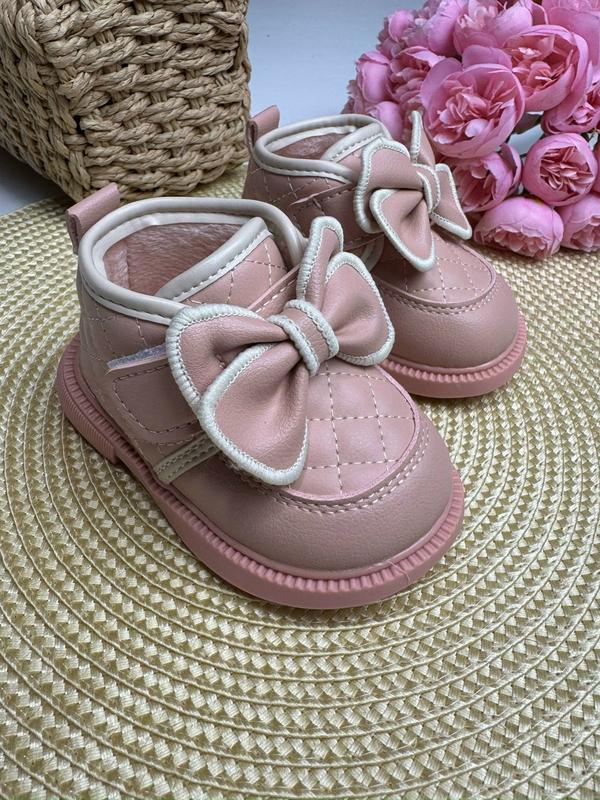 Матеріал: верх із еко-шкіри – не боїться вологи та легко чиститься. Всередині: м'якенький плюш Підошва: гнучкий та зносостійкий каучук – надійне зчеплення з поверхнею. Застібка: зручна липучка Легкі, м'які РОЗМІР 15 - устілка 11,7 см 16 - устілка 12,1 см 17 - устілка 12,6 см 18 - устілка 12,9 см 19 - устілка 13 см 21 - устілка 13,3 см 22 - устілка 14 см 23 - устілка 14,5 см 24 - устілка 15 см 25 - устілка 15,5 см