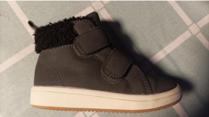 Стильные, теплые ботиночки от H&M для малышей Верх - эко-кожа, внутри утепленные искусственным мехом Сезон - холодная осень/теплая зима Из нюансов слегка потертые пятки на подошве! Если надо сделать еще снимок