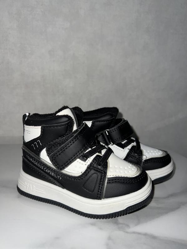⭐️ Стильні чорно-білі черевички для малюка від Bosniko. Висока модель із супінатором, що забезпечує правильну підтримку стопи. Застібаються на зручну липучку, завдяки чому взуття легко одягати та воно добре фіксує ніжку. Стан — як нові, без будь-яких дефектів, потертостей чи слідів носіння, білосніжно білі. (На підошві сині сліди від маркеру, не бруд) Ідеально підійдуть для прогулянок у осінньо-весняний період, комфортні та практичні. Пишіть, з радістю відповім! Маю багато одягу для малюків від 0 до 18 місяців. Гарантую швидку відправку 💗