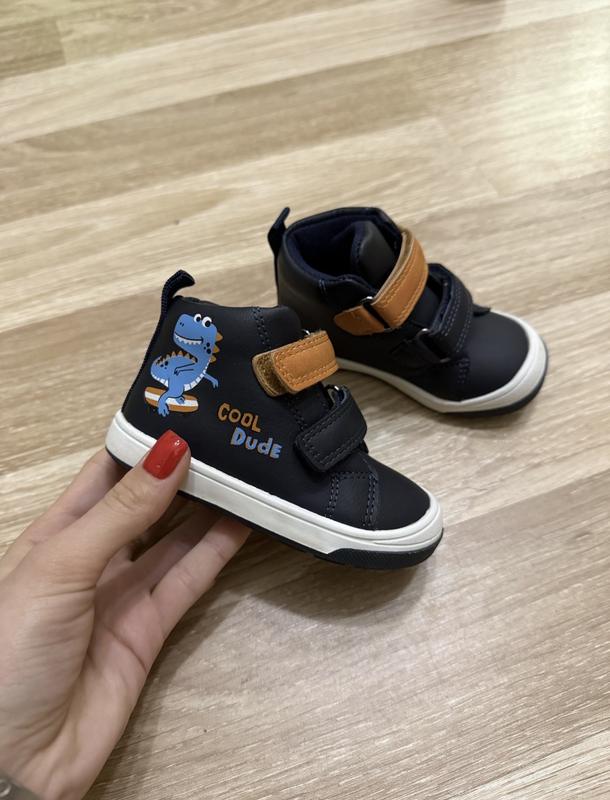 Демісезонні черевички з динозавром Стильні демісезонні черевички для малюка. Добре тримають ніжку, зручна застібка, підходять на осінь/весну. Стан - нові. Розмір 20. Якщо будуть питання — пишіть. Відправка щодня.