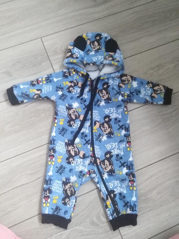 Комбінезон дитячий "Міккі Маус". 68 розмір. Підходить приблизно 3-6 місяці. Всередині з начосом(досить плотним). Можна одягати в приміщенні(осінню одягався на вулицю). Стан нового.