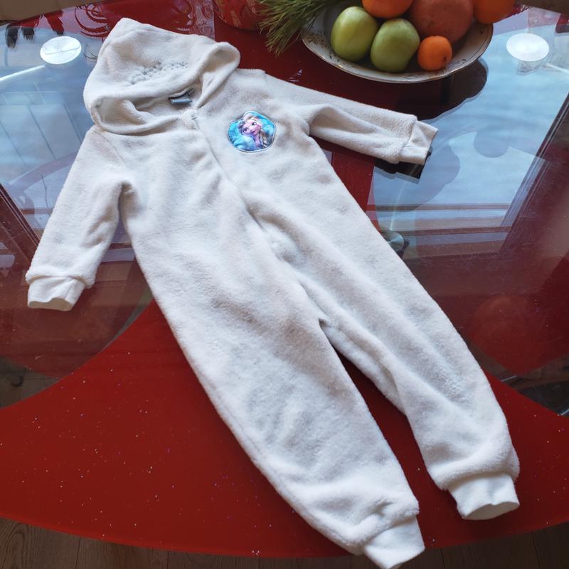 Disney Frozen Эльза Холодное сердце теплый плюшевый ромпер кигуруми пижама человечек слип комбинезон с капюшоном девочке 18-24м 86-92см Розможно будет и дольше, размер по бирке 2А, 2 года Мягкий ворсиствй флис. Состояние очень хорошее, немного стёрлись блестяшки, а так все ок. На осень, зиму и начало весны.