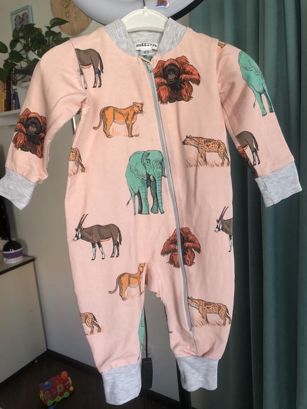 Манжеты на ручках и ножках можно заворачивать, за счет чего подойдет и до 62 см, тянется Стильный и удобный