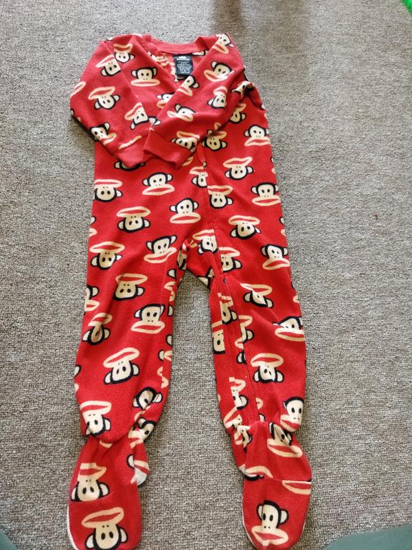 Размер по набору 2Т На легком флисе Состояние очень хорошее, более не большие потертости на пятках. Цвет насыщенный красный.