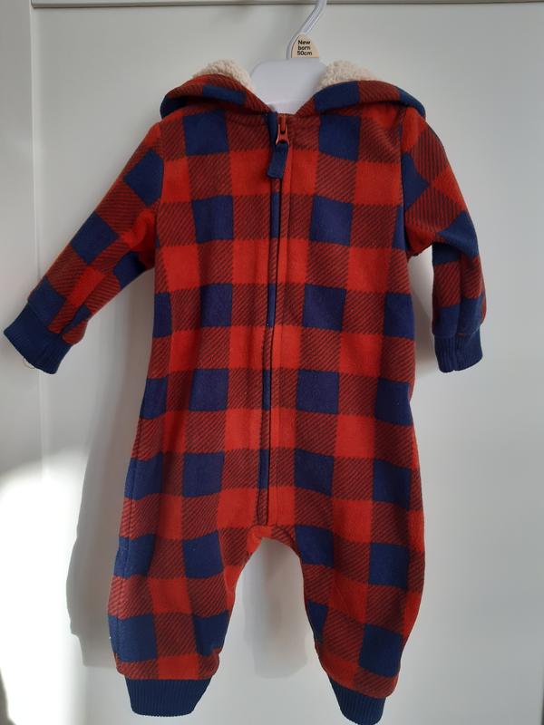 Флисовый ромпер с капишончиком от Carter's. Капешончик утеплен. Купили, оказался в притик, надевли 2 раза и стал вообще мал.
