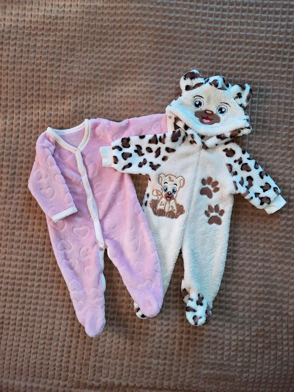 Два мягких комбинезона. Размер 62. Розовый чуточку больше, будет+/- до 6 месяцев. Стан очень хорош, одевали всего несколько раз.