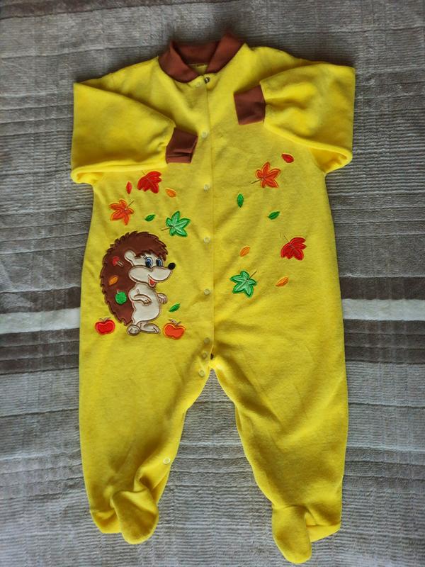 Новый велюровый человечек , не был в носке . Подарили ,но ребёнок быстро вырос. Длинна рукава от плеча 26.5 см ,от горловины 36см Общая длинна 63см Шаг 21см Стопа 13 см Под рукавами ширина 34см
