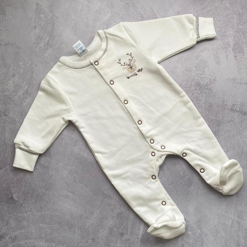 Хлопковые человечки на футере с манжетами-антицарапками и милым принтом с олеником 68 размер Новые