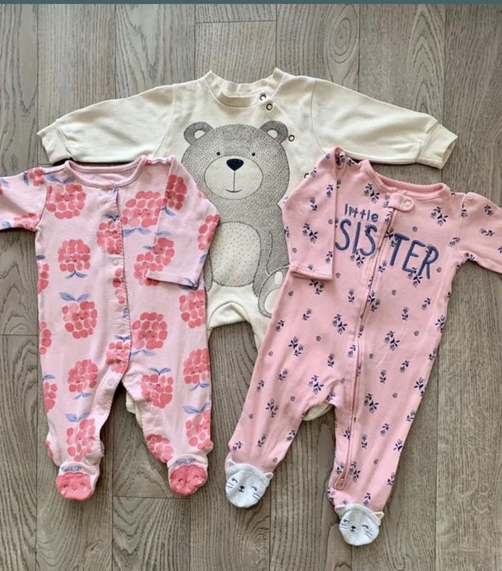 Человечки на девочку, в хорошем состоянии, пятен нет, на фото видно следы носки. Можно носить с 3-6мес и дольше.
