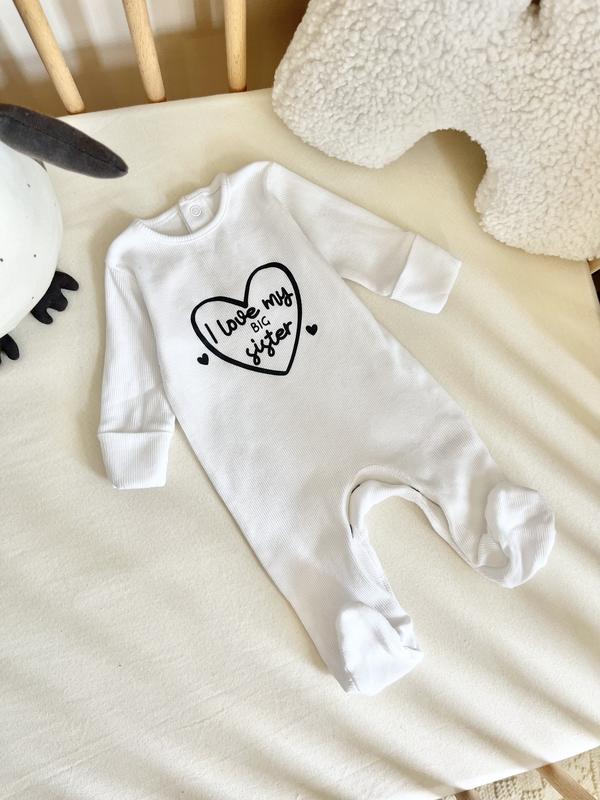 Белоснежный человечек в рубчик Стан нового Надевался на несколько минут I love my big sister Подойдет для младших братиков или сестричек для фотосуссии